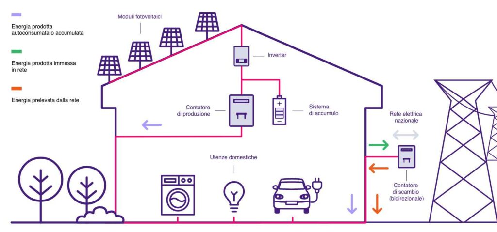 Grazie alla modalità di scambio sul posto, è possibile riversare l’energia eccedente prodotta nella rete elettrica, permettendo di prelevarla in momenti successivi, quando ne sorge la necessità. Questo meccanismo offre flessibilitá nell’utilizzo dell’energia prodotta.